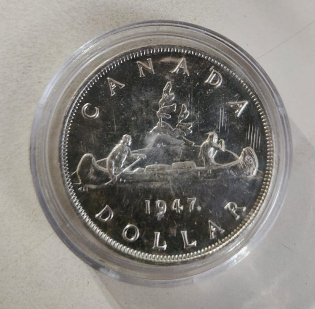 Uncirculated 1947 ML Canada $1Silver Dollar Variety Coin